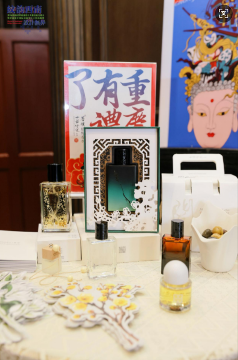 活动现场来自荣获十多项国际国内产品与包装设计大奖的重庆本土原创品牌中华味道.cn菩璞香水香氛展示,还有梁明玉设计大师原创大足石刻纹样的时尚精品展示,直观呈现了重庆多元的城市文化与当下时尚美学完美融合创新。