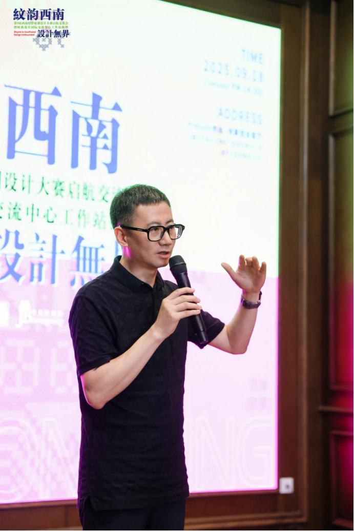 活动现场中华味道创始人、重庆人文科技学院建筑与设计学院院长张雄围绕西南纹样的时尚应用分享了中华味道如何挖掘地域辨识度素材以国际化视觉形象的品牌打造经验。青年设计师李聪分享了自己运用传统纹样进行创作设计并获得“宋韵”全国专业赛事金奖的心得。