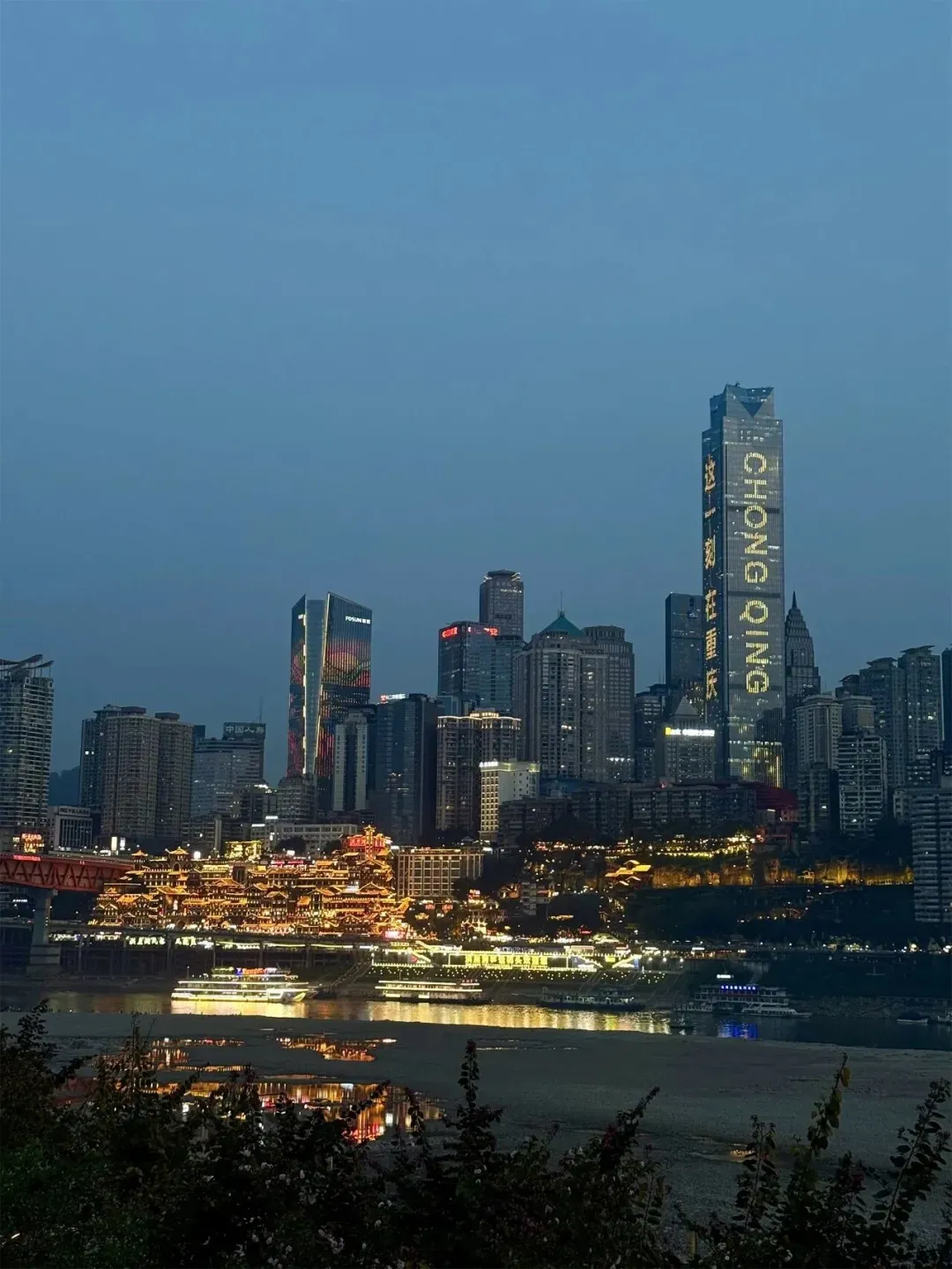 江北嘴江滩公园与洪崖洞隔江相望,将洪崖洞全貌、千厮门大桥、朝天门尽收眼底,视野超开阔,无遮挡。从傍晚的落日余晖,到夜晚的灯火辉煌,搭配江面驶过的游船,轻松拍出氛围感照片。