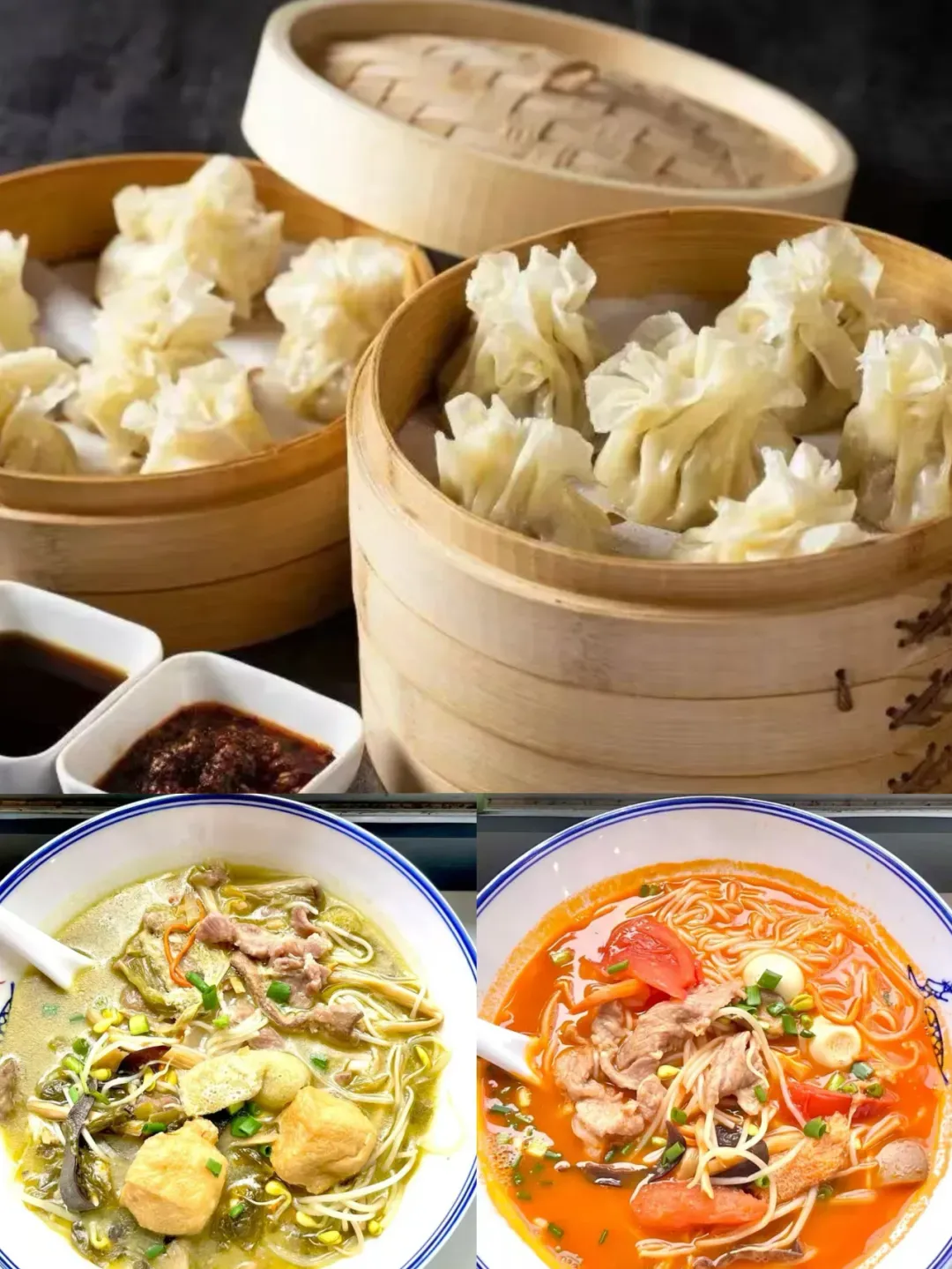 烧麦皮如纸薄,现点现包现蒸,馅料丰富,汤汁充足,轻轻一咬汁水就会在口中爆开。鱼汤米线也值得尝一尝,味道鲜美,奶白色的汤底是用鲫鱼熬出来的,米线吸收汤汁的鲜味,加点酸菜味道更绝。