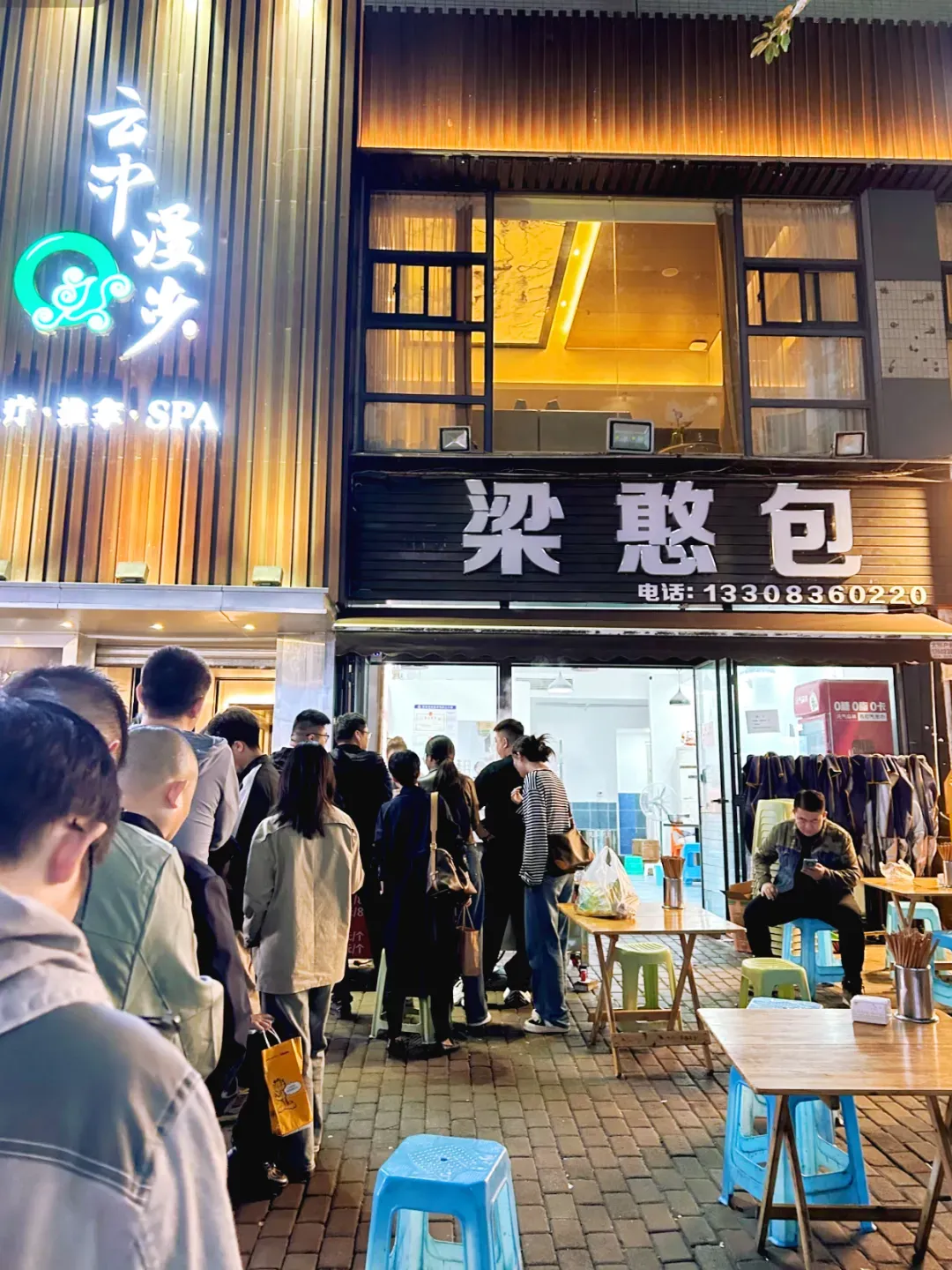 重庆宵夜里面,夜包子是本地人才懂的一种。夜包子名单里,学府大道上的梁憨包必须有姓名,只有晚上18:00~次日6:00营业,每天晚上都有人排队,饱含汁水的鲜肉包配上他家的辣椒油,美味!当然,这家小店也被高德扫街榜挖了出来,小编预测,国庆期间排队的人要更多了……