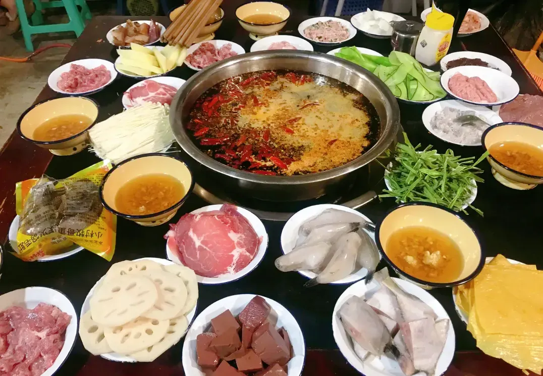 愉快老火锅是典型的“苍蝇馆子”,环境朴实,位于老旧居民楼下,充满了市井气息。锅底为传统的重麻重辣牛油锅底,味道厚重浓郁,油是现场添加。店内大都在 2-15 元之间,菜品丰富性价比较高。