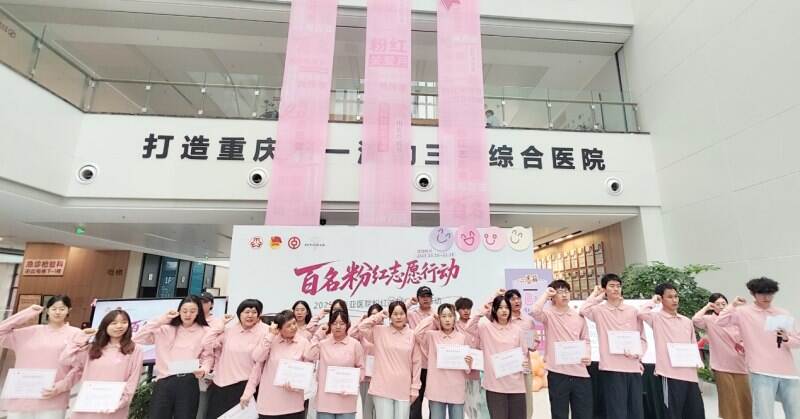 “康复者服务患者”的互助模式,成为此次公益行动的创新亮点。重庆海吉亚医院组建的百人“粉红志愿团”,涵盖肿瘤康复者、高校学生、心理学专业人员等多元群体,启动仪式上,志愿者代表接过聘书并集体宣誓,未来一个月将走进医院走进病房,分赴“暖心导诊岗”“姐妹谈心屋”“生命故事分享会”“病区互动安慰岗”四大岗位为患友们服务。重庆高新区团工委负责人表示,发动高校青年志愿者加入,既是为公益注入青春活力,也是培养青年社会责任感的实践课堂。