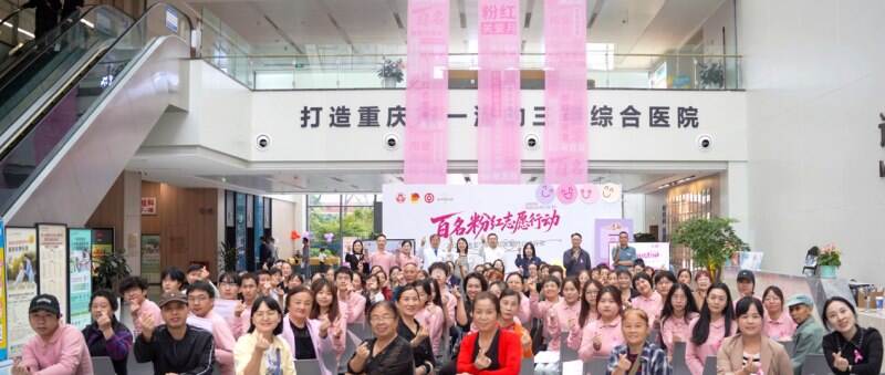10月15日,在第26个“世界乳腺癌防治月”来临之际,重庆高新区妇女联合会、重庆高新区团工委联合重庆海吉亚医院,共同启动“百名粉红志愿行动”暨2025海吉亚粉红关爱月公益行动。由百名肿瘤康复者、高校师生、专业社工等组成的“粉红志愿团”集结亮相,16米巨型粉红丝带下,康复者们分享抗癌历程,以“生命影响生命”的力量,拉开这场“政策保障筑基、暖心互助聚力、惠民服务落地”公益活动的序幕。
