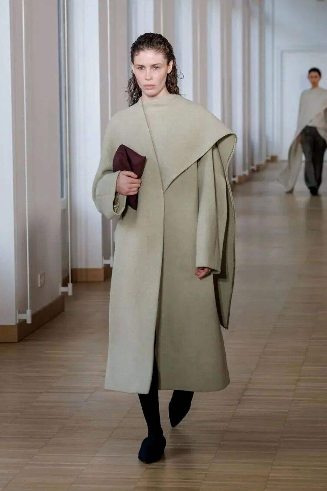 金秋的大衣中融入随性的考究细节,简洁廓形与流动线条结合,不仅仅是简单的垂坠,还保留了呼吸感。