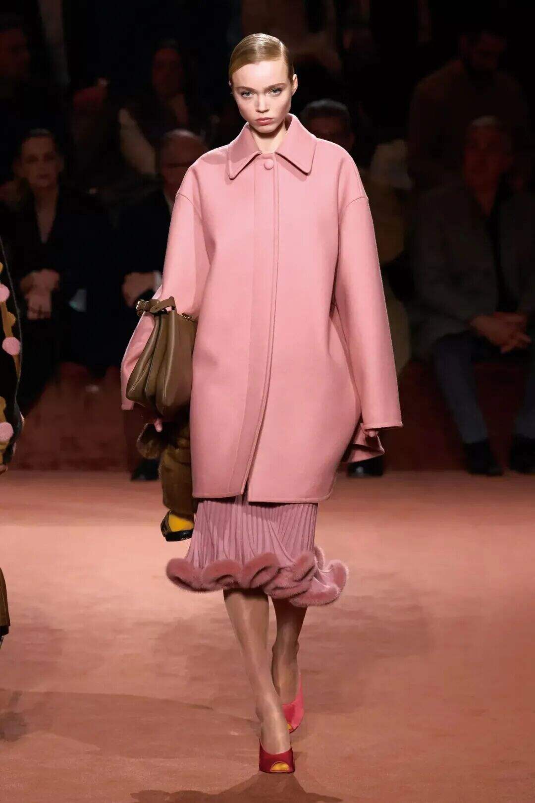 皮草这一经典元素,在2025秋冬被重新定义,它不再是全身覆盖的奢华姿态,而是以边饰的形式点缀在袖口、领缘、裙摆或包袋上。