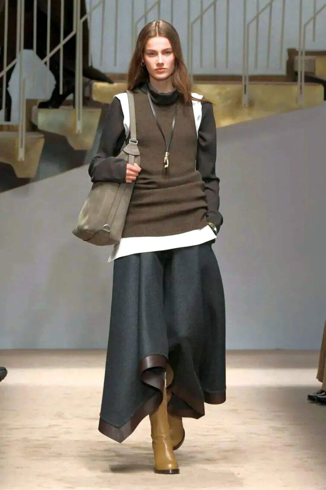 迷笛裙秋冬款多用柔软褶皱或A字摆,长度在小腿中部,既保持线条修长,又方便配靴。