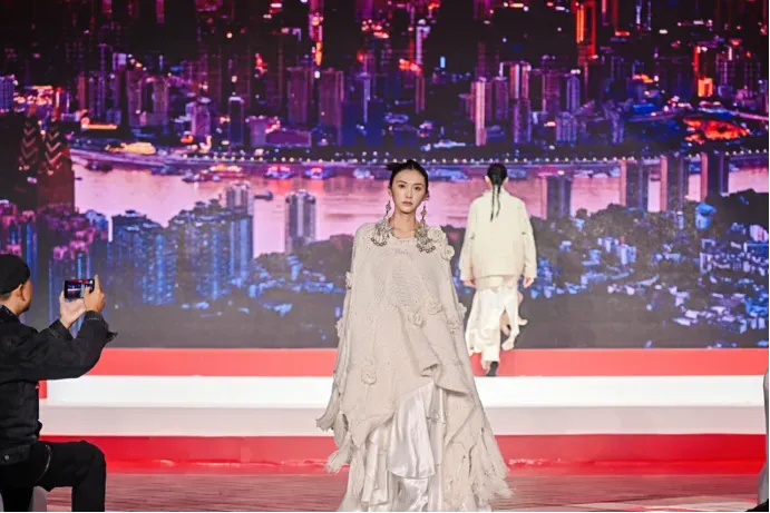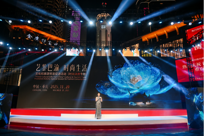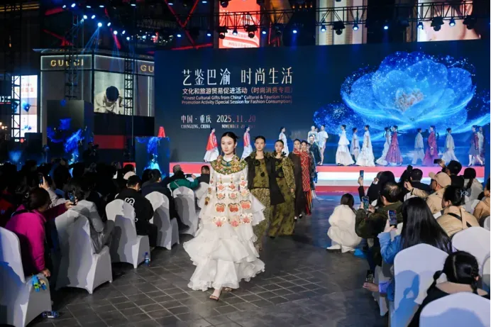 11月20日晚,“多彩中国 佳节好物”文化和旅游贸易促进活动(时尚消费专题)的系列活动“艺鉴巴渝 时尚生活”时尚首秀,在渝中区解放碑CBD精彩上演,以非遗技艺与当代设计的碰撞,为市民游客呈现了一场兼具视觉冲击与文化深度的美学盛宴。