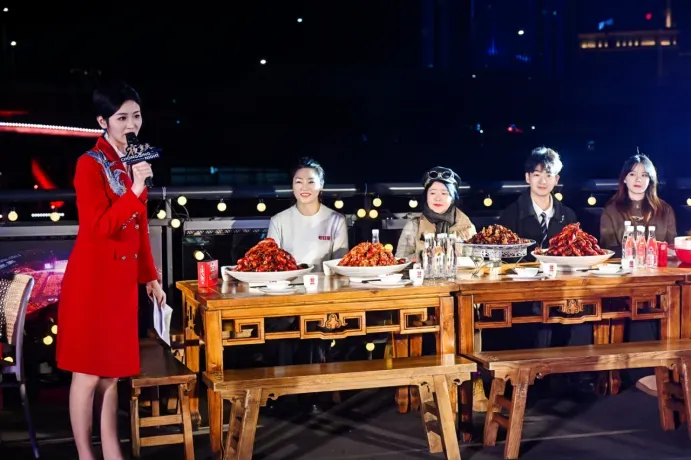 现场,有中医非遗技艺体验,好看的剧目片断和川剧变脸、乐队演唱,还有热气腾腾的火锅、小龙虾等你来吃……五大场景亮点交织,构建出一场集视觉、听觉、味觉、触觉于一体的文旅盛宴,将“夜重庆”的好看、好玩、好吃尽数囊括。