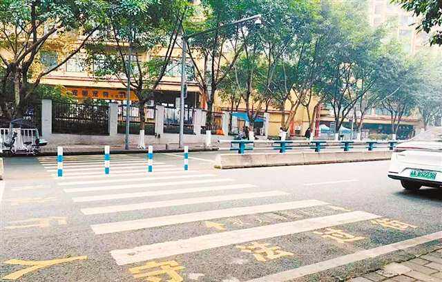 12月29日清晨7点,大渡口区金湾路南段公交站旁,居民刘放牵着女儿,从容走过崭新清晰的斑马线。数月前,同样的出行却是另一番景象——为了少绕几百米,附近居民时常冒险翻越道路中央的隔离栏在车流中穿梭。
