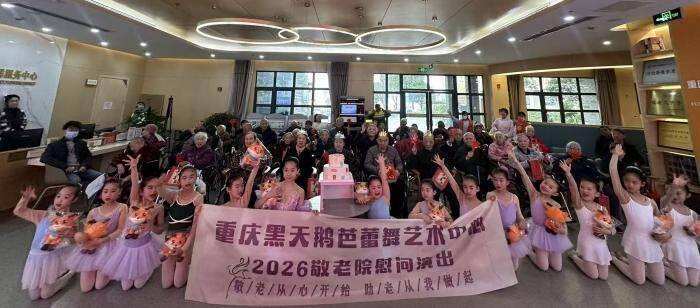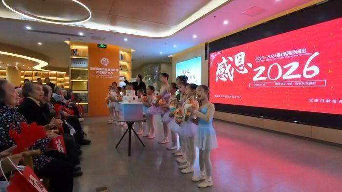 当芭蕾的优雅遇见夕阳的从容,一场延续十年的温暖之约,在2026年的开端写下最动人的注脚。最近,在解放碑一家养老中心里,一群身着舞裙的小朋友,用芭蕾的舞步、真挚的笑容,为爷爷奶奶们送上新年与生日的双重祝福,让这个冬日因爱而格外温暖。