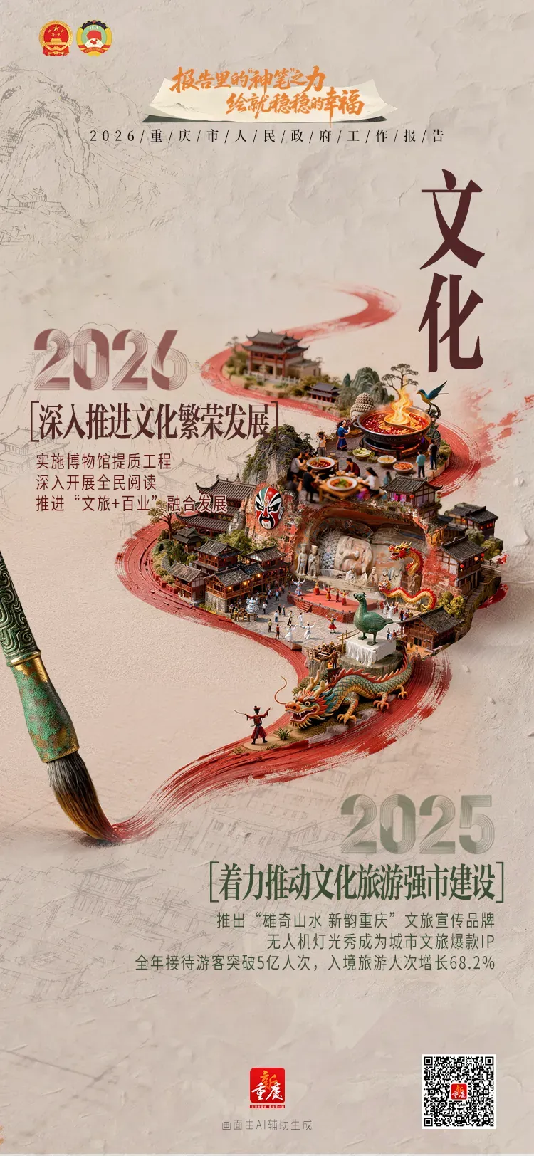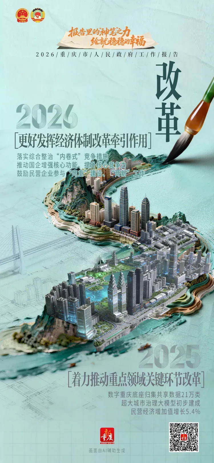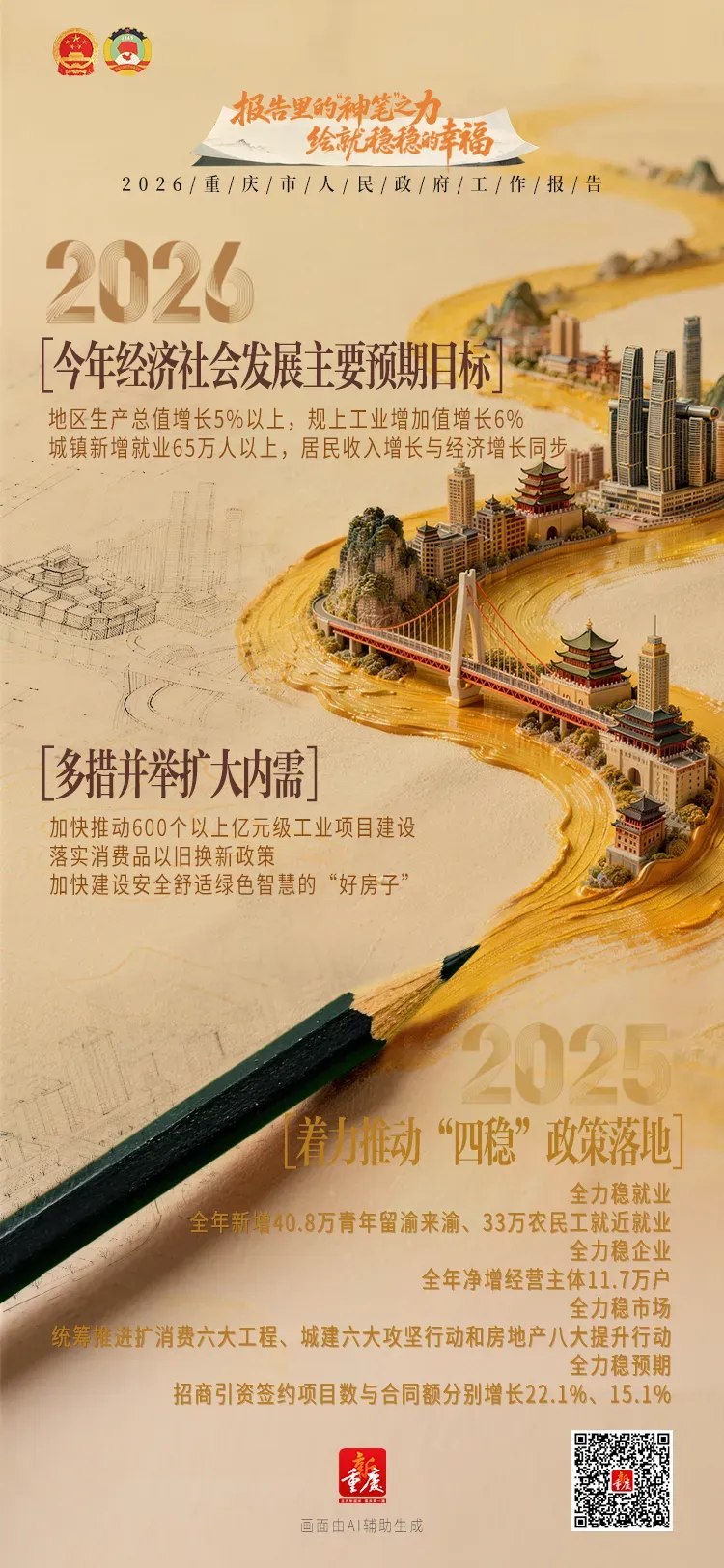 “神笔”绘巴渝,报告见幸福。让我们跟随灵动笔触,看2026重庆市政府工作报告中重庆澎湃向上的活力,感受“稳稳的幸福”!