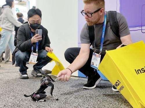 ▲在美国拉斯维加斯举行的2026年国际电子消费展上,观展者在和重庆造哮天Sirius智能机器狗互动。受访单位供图