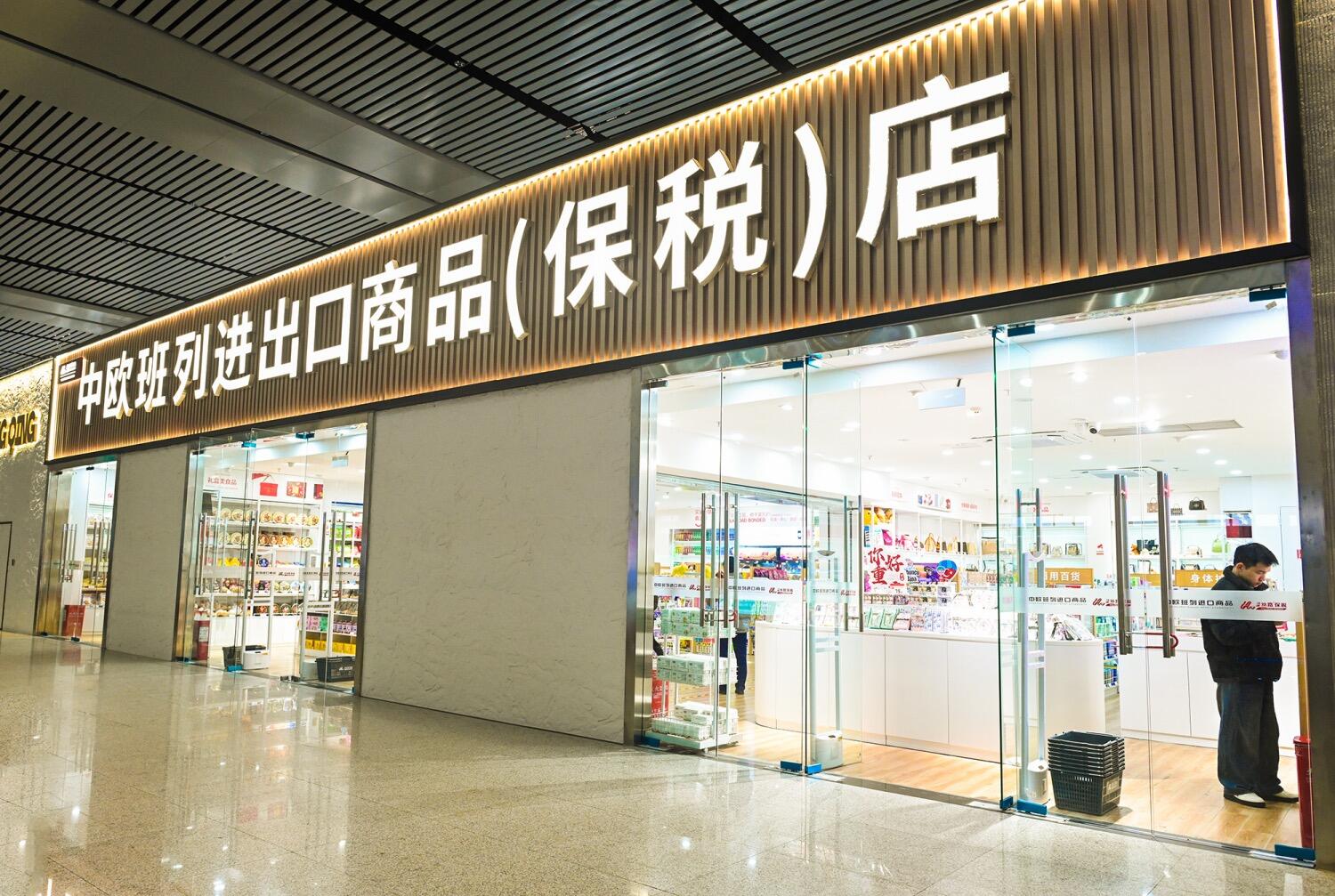 ▲中欧班列进出口商品(保税)店。汪彦彤 摄