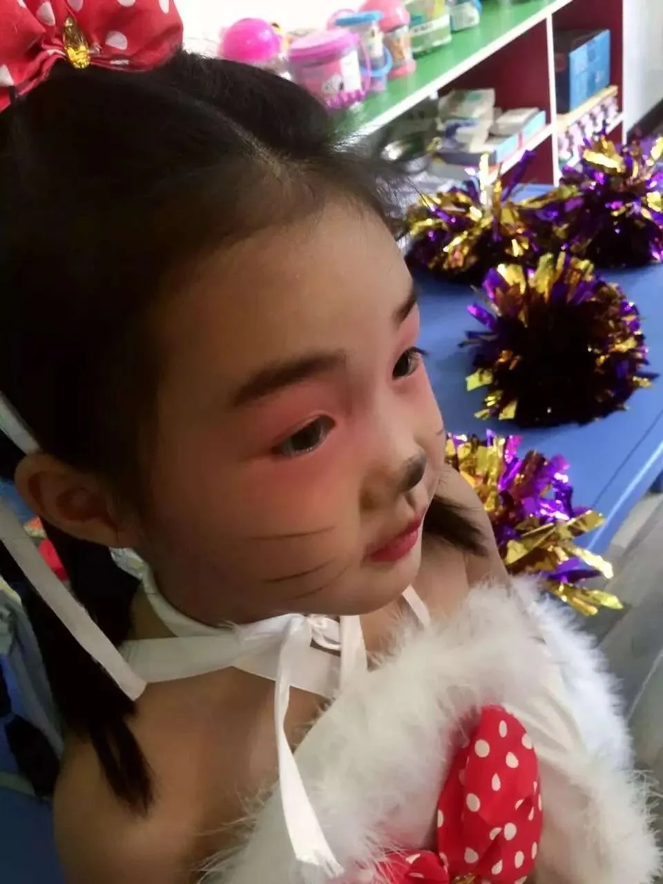 我们当年的“六一”妆容,是妈妈从铁皮盒里抠出的半截口红,在眉心郑重按下的“朱砂痣”,是老师蘸着廉价胭脂在两颊横扫出的两团“高原红”,是上世纪最标准的“节日限定皮肤”。如今孩子们的“六一”妆容,早从“表演刚需”升级为“美学刚需”,各种艾莎公主仿妆、小兔子妆,奶萌自然,再也不是同学们看着就互相取笑的夸张模样,终于进化成功了。