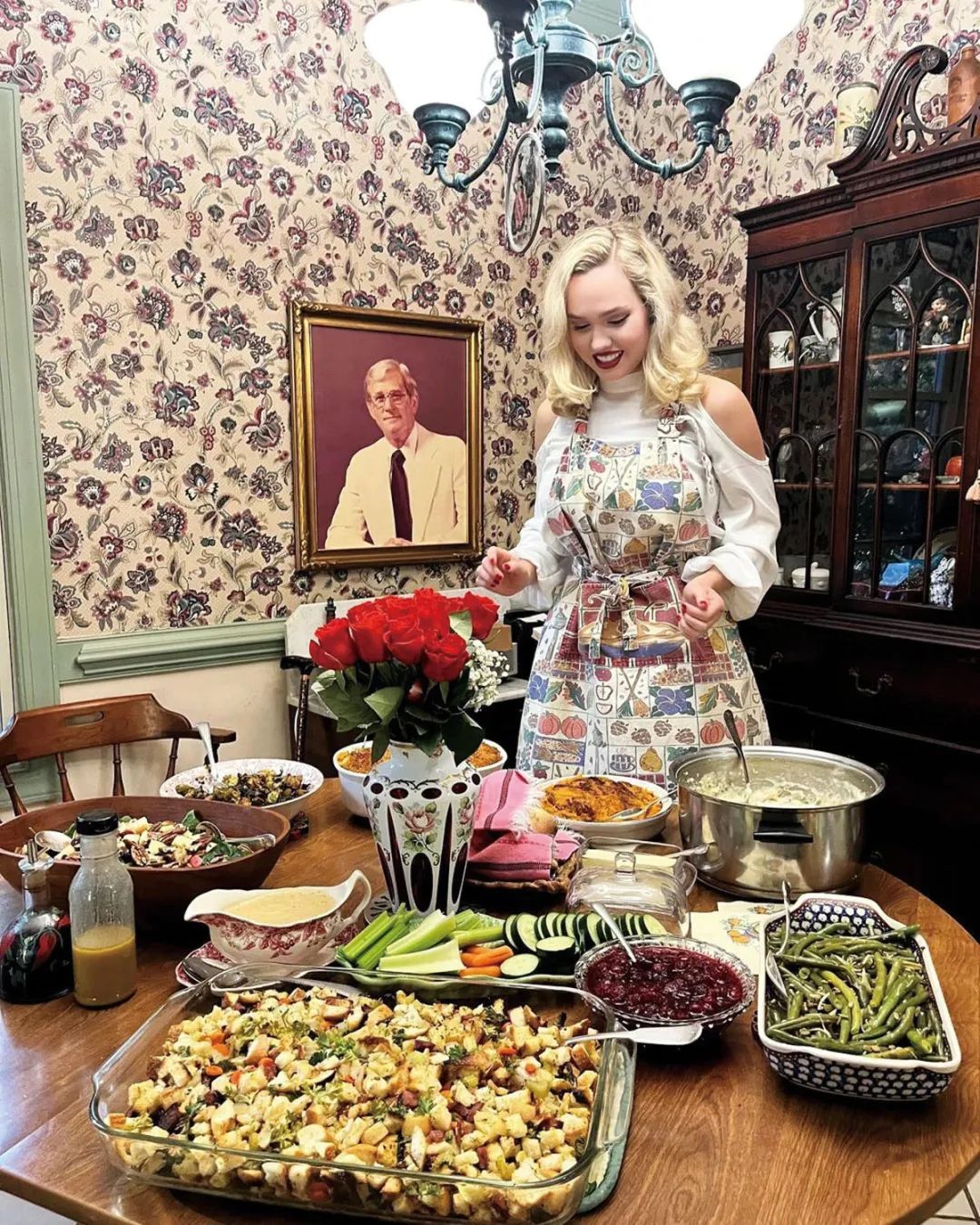 EsteeWilliams是一位在TikTok上拥有17万粉丝的短视频博主。标志性的金色短卷发和布满小花的连衣裙搭配着可爱围裙,“Tradwife”是她最出名的标签。