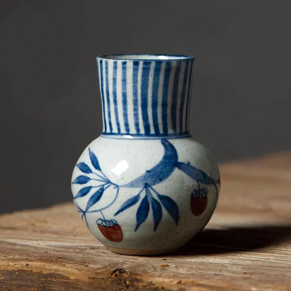 这款青花复古小花瓶不就是小时候看奶奶放鸡毛掸子的罐子吗!如今拾上几支小花插上,置于茶桌窗前、壁下,意趣盎然。