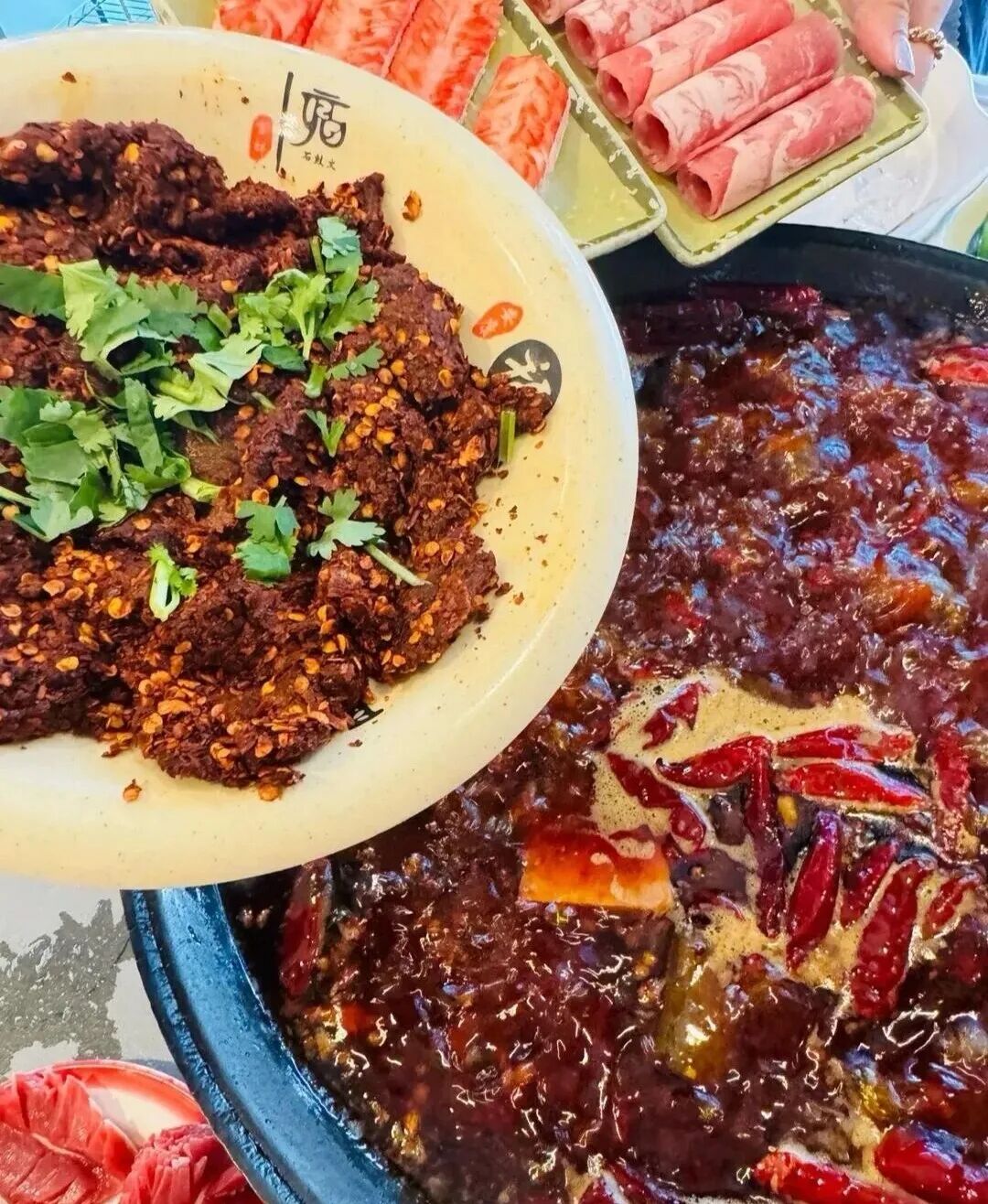锅底是浓郁的牛油底料,香而不燥。菜品新鲜是其一大特色,推荐鲜鸭血、厚切老肉片、鲜毛肚、鸭肠、麻辣牛肉等。麻辣牛肉裹满辣椒面,煮后辣味十足,鲜嫩多汁;鲜毛肚叶片宽大厚实,脆嫩爽口。此外,店内还有免费的红糖醪糟小汤圆,软糯Q弹,甜而不腻。