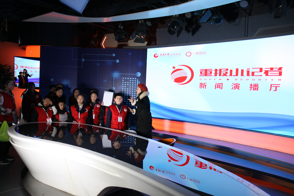 重报小记者团体验新闻主播全流程。通过亲身实践体会光鲜亮丽的主播背后,是精益求精的百倍努力。