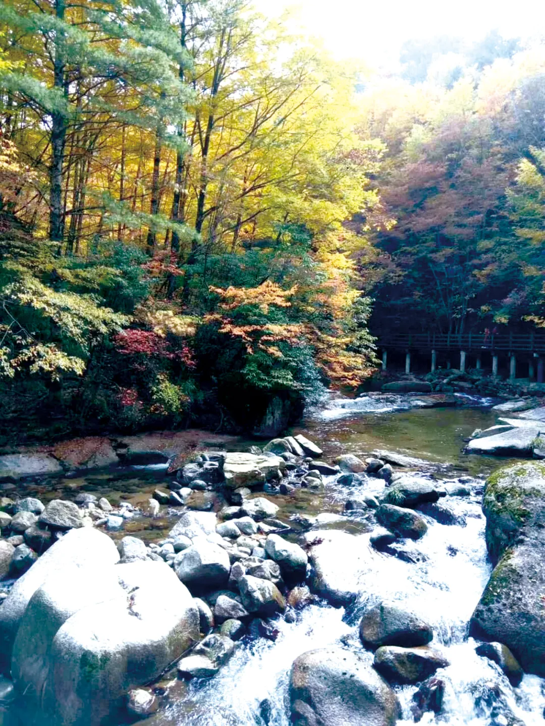 这是看红叶的精华区域,也是红叶节期间人最多的热门点,有“天然画廊—大小兰沟—黑熊沟—香炉山”经典动线。可以乘景区交通车漫游红叶长廊,欣赏红黄交织的彩林;也可以沿溪流栈道近距离观赏红叶,感受其与溪流相互映衬的美景。