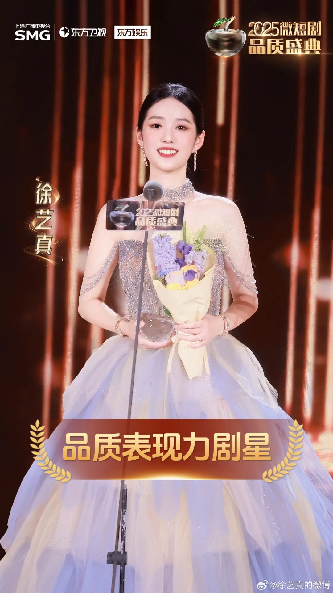 争议之下,是徐艺真源源不断燃烧的破界力量。2025年7月,CMG首届中国微短剧盛典将“年度微短剧女演员”颁给徐艺真时,她眼里闪烁着泪光,用颤抖的声音说着:“有时我感到微短剧像是我的母亲,而我是她的女儿。”