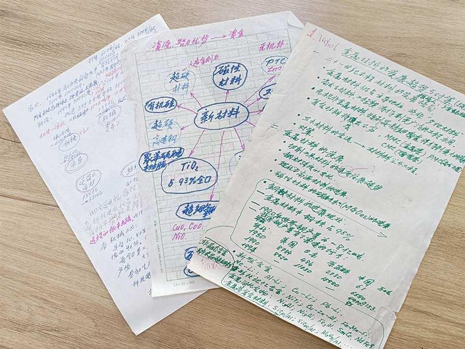展厅里陈列着近百件珍贵的档案资料。其中,既有涂铭旌生前的手稿,也有他当年的入党志愿书,还有他独具特色的,用红色、绿色、黑色的笔手写的“涂氏PPT”课件,以及走访企业时密密麻麻地记录下的电话号码本……它们,记录着涂铭旌和材料打交道的一生。
