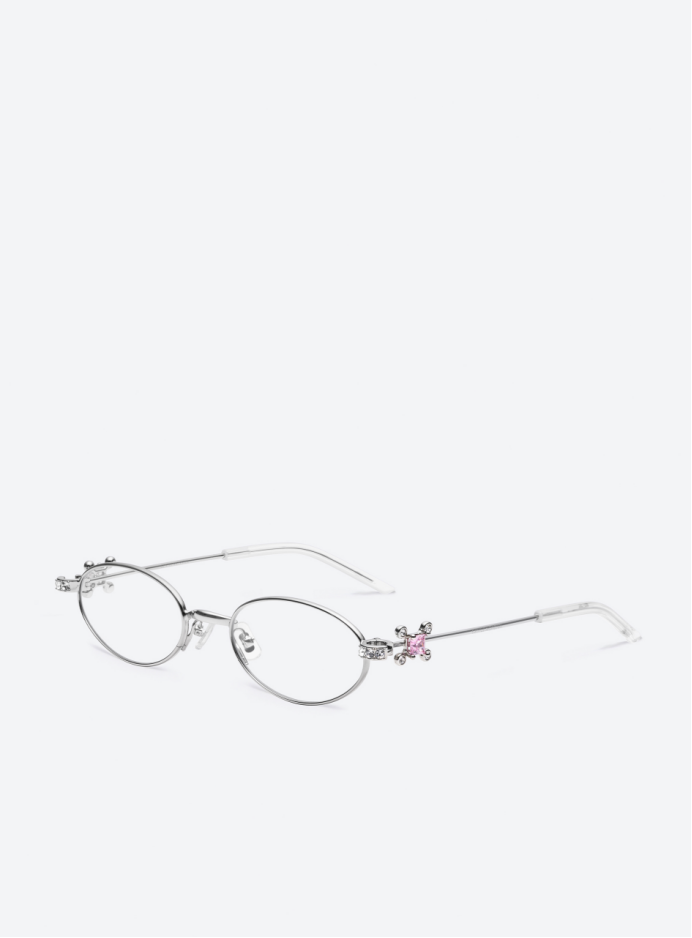 GENTLE MONSTER 2025 JEWELRY COLLECTION 太阳镜。银色金属椭圆形太阳镜,灵感源自于珠宝艺术。
