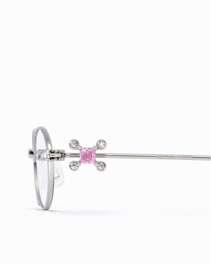 GENTLE MONSTER 2025 JEWELRY COLLECTION太阳镜。银色金属方形太阳镜,灵感源自于珠宝艺术。