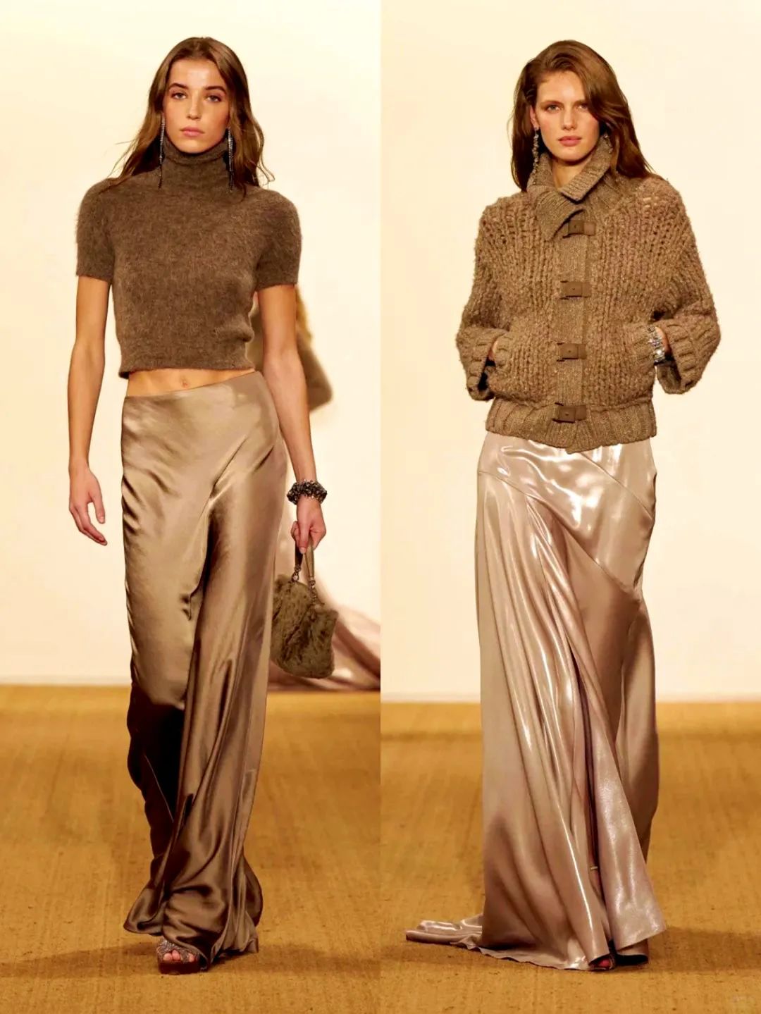 从柔软的羊毛到皮质手提包,从麂皮大衣到流光溢彩的绸缎……可以试试搭配不同的材质来增添视觉层次感。