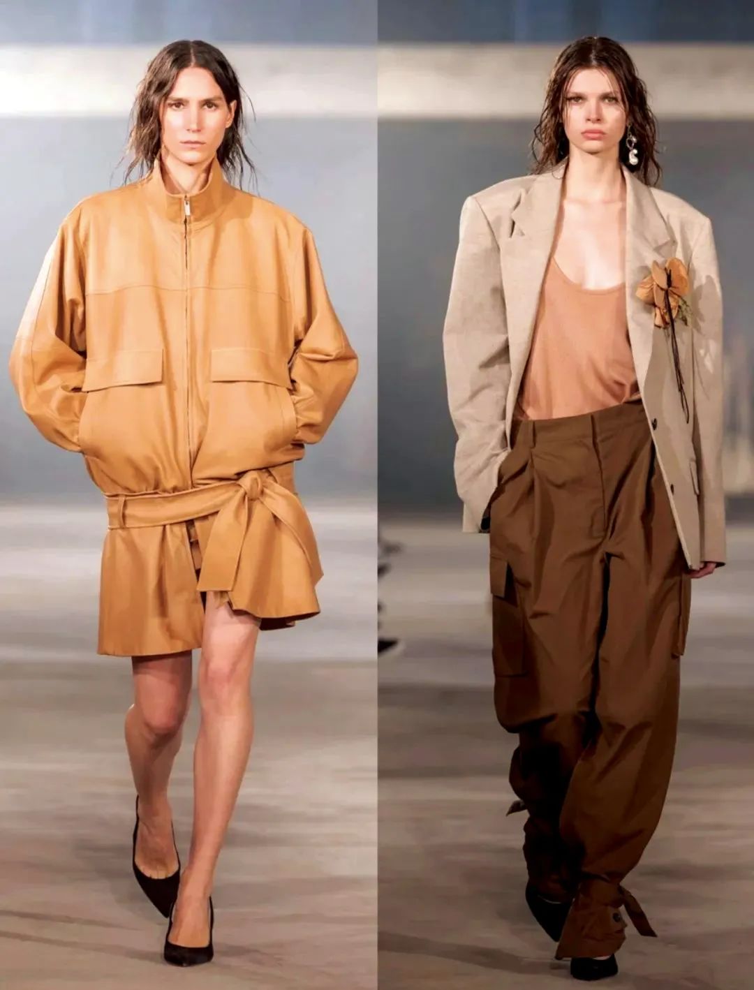 以摩卡慕斯为圆心,其半径周围的奶茶色、驼色、米白色和咖色等温暖柔和的色调,通过单品搭配的互补、对比与平衡原理,可以巧妙地营造出一种慵懒舒适的氛围,让搭配更加生动、充满个性。